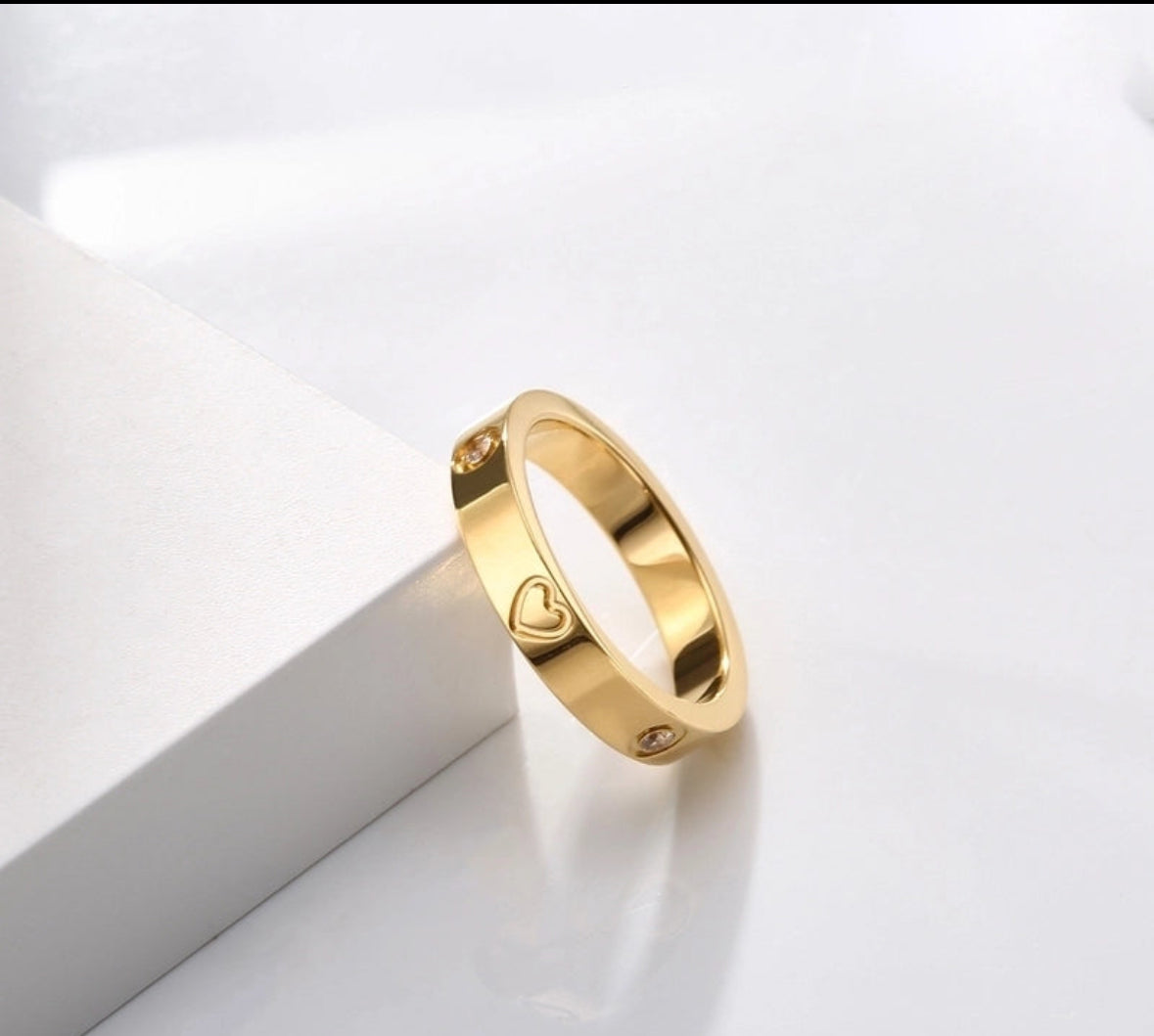 schlichter Ring mit Herz Applikation und Strassbesetzung